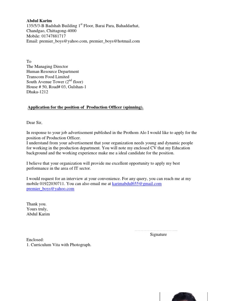 Job Application Cover Letter Bd - An application letter is often intended to stand o.